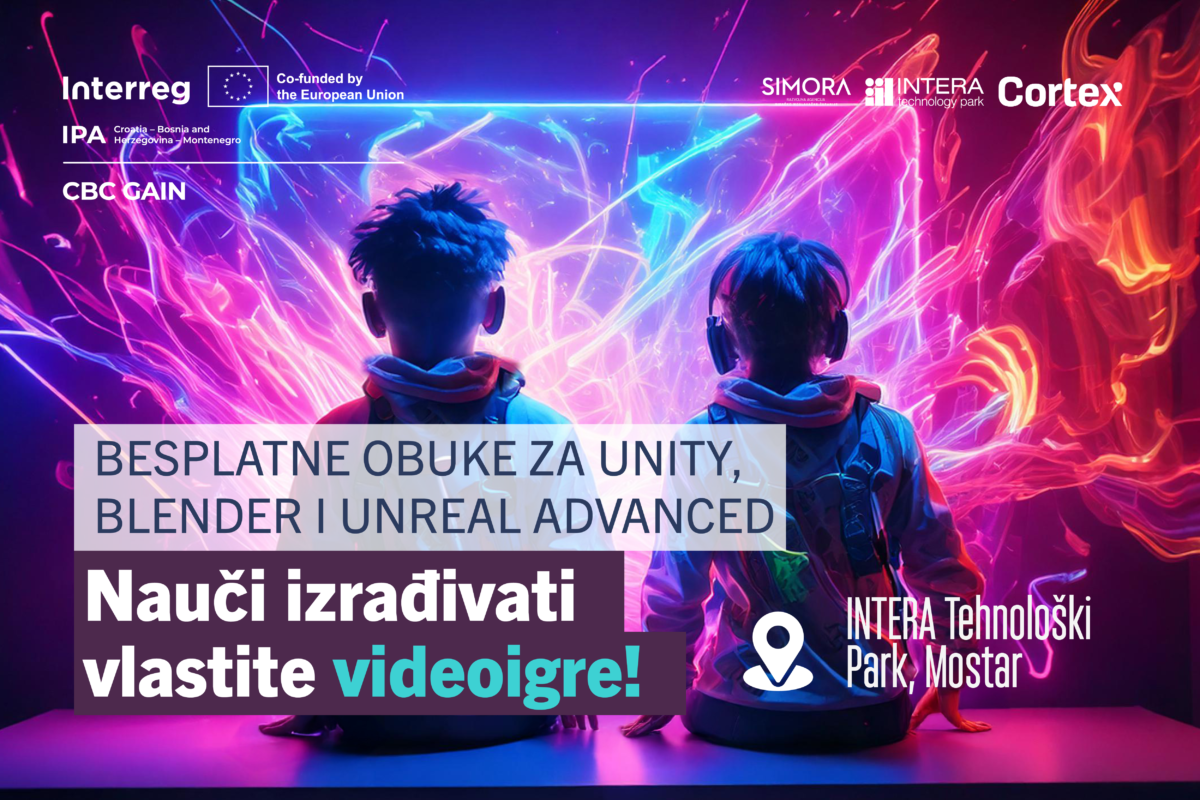 U okviru projekta CBC GAIN – Investing in the Future: Gaming for New Generations, koji se realizira uz potporu Europske unije, u INTERA Tehnološkom Parku pokrećemo novi ciklus obuka: Unity (početna razina), Blender (početna razina) i Unreal Engine (napredna razina).