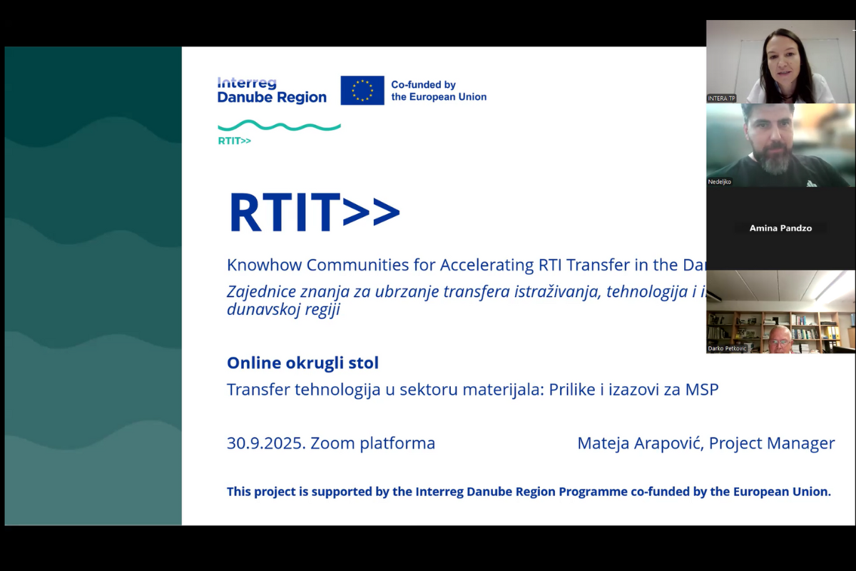 Ovaj okrugli stol dio je projekta „Knowhow Communities for Accelerating RTI Transfer in the Danube Region – RTIT>>“, koji potiče inovacije u području održivih, biološki baziranih i naprednih materijala povezivanjem MSP-ova, istraživačkih organizacija i dionika diljem dunavske regije. Projekt se provodi u okviru Programa za dunavsku regiju 2021-2027.